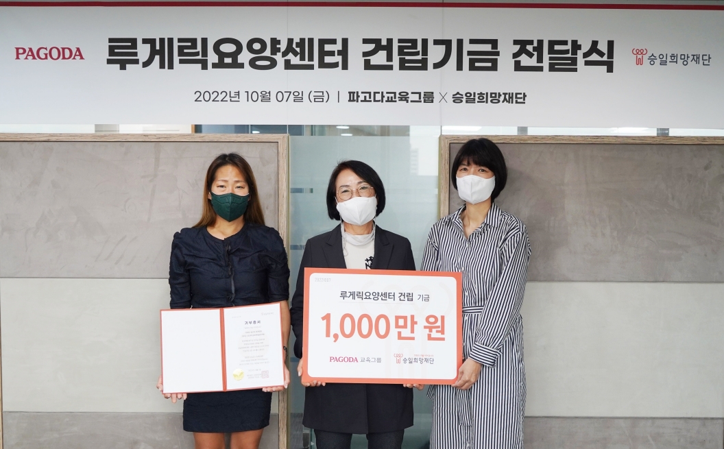 파고다 교육그룹, 승일희망재단에 ‘루게릭 요양센터 건립기금 1,000만 원’ 전달